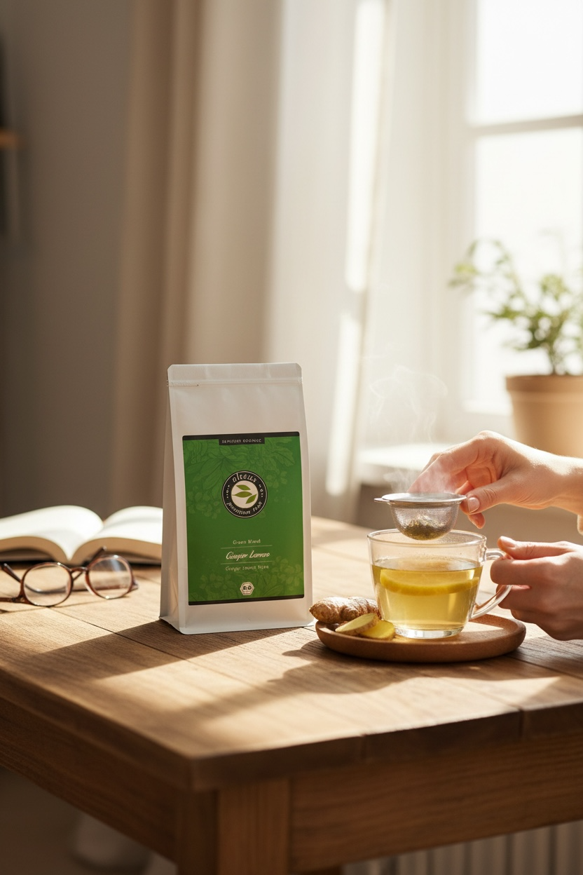 Zutaten: Grüner Tee China Sencha*, Ingwer* (2%), Lemongras*, natürliches Zitronen Aroma, Zitronenschalen* (1%).* Aus kontrolliert biologischem Anbau.