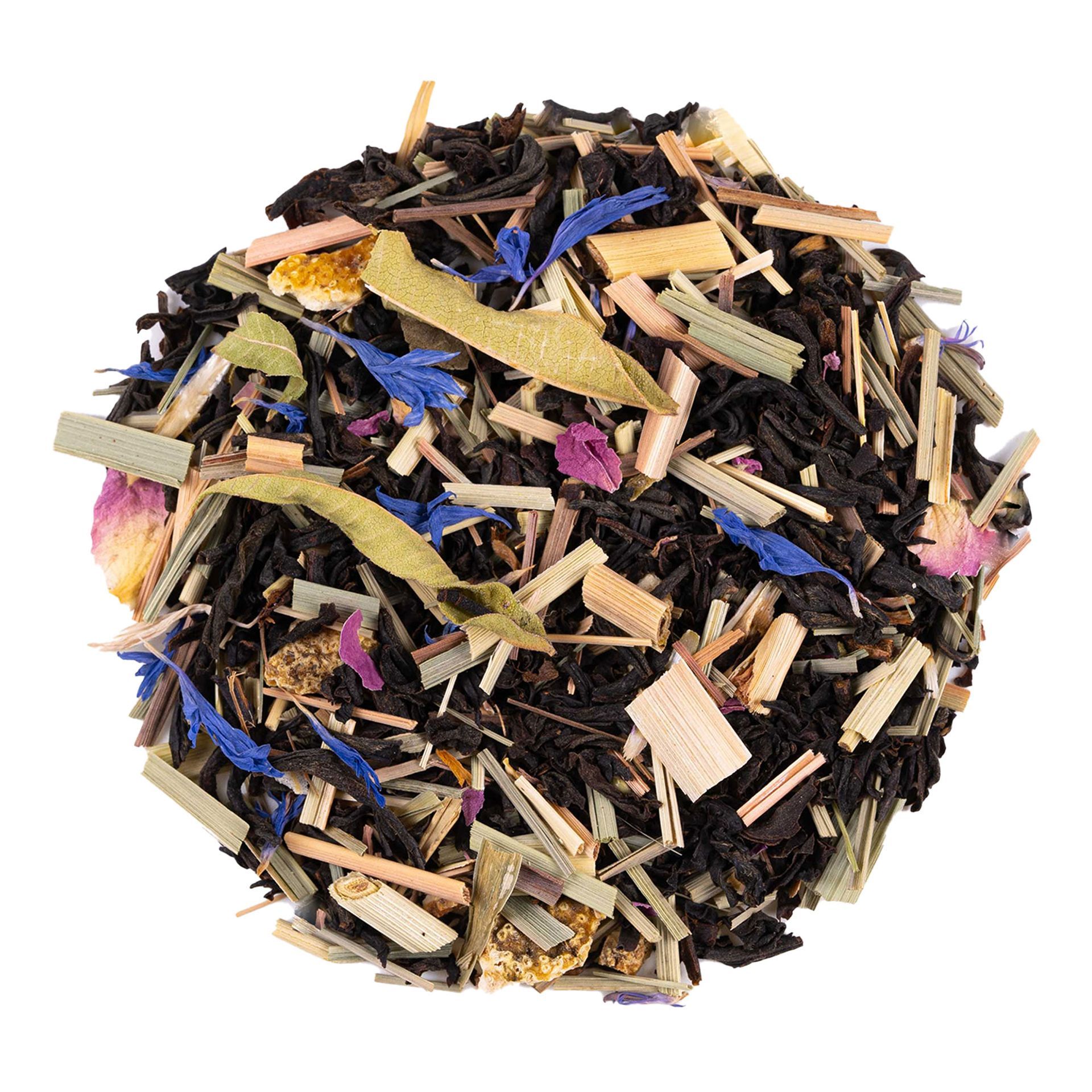 Zutaten: Schwarzer Tee Assam, -Südindien (38%), Lemongras, Schwarzer Tee Assam OP (15%), Schwarzer Tee Golden Yunnan OP (5%), natürliches Aroma, Orangenschalen, Zitronenschalen, Verbene ganz, Rosenblüten, natürliches Orangen Aroma, Kornblumen blau. | Natürlich aromatisierte Alveus-Premium-Tee-Mischung mit Zutaten aus nachhaltigem Anbau.