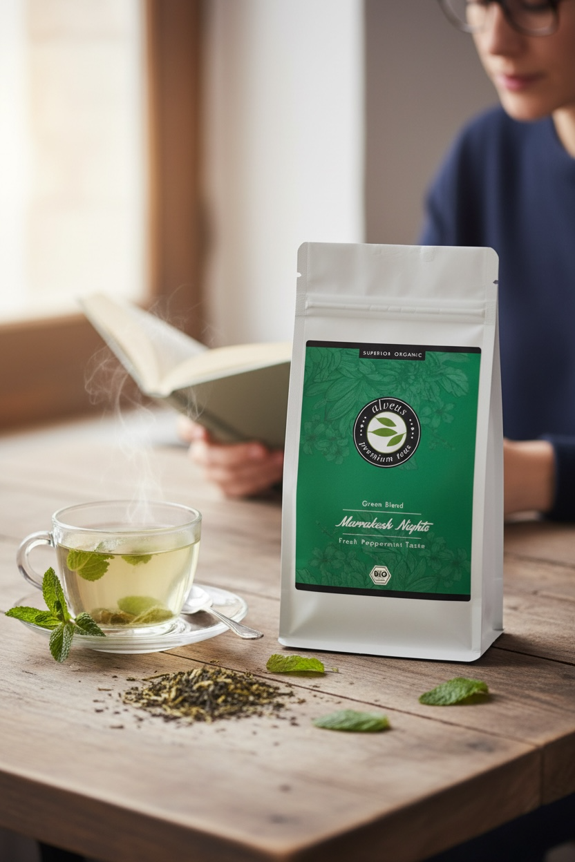 Beschreibung: Marrakesh Nights vereint klassische marokkanische Minze mit grünem Gunpowder-Tee. Jeder Schluck lässt in eine geheimnisvolle, orientalische Welt voller Magie und Tradition eintauchen.